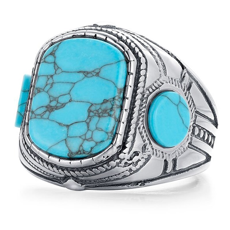 Check out this lucky turquoise ring! Made of stainless steel, this ring is incredibly durable and high-quality, protecting you from all everyday threats.
