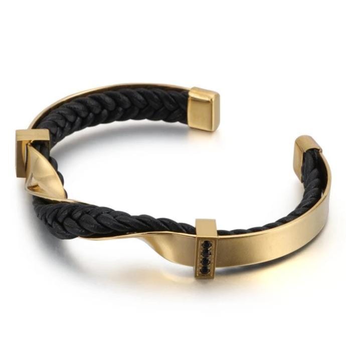 This twisted bangle, made of stainless steel and high-quality braided leather, adds a touch of luxury to your look. The twisted effect in the centre of the bracelet perfectly highlights the contrast between the two materials, providing a distinctive touch to your wrist.