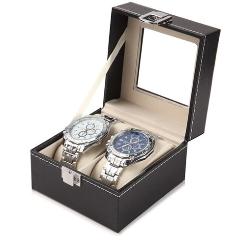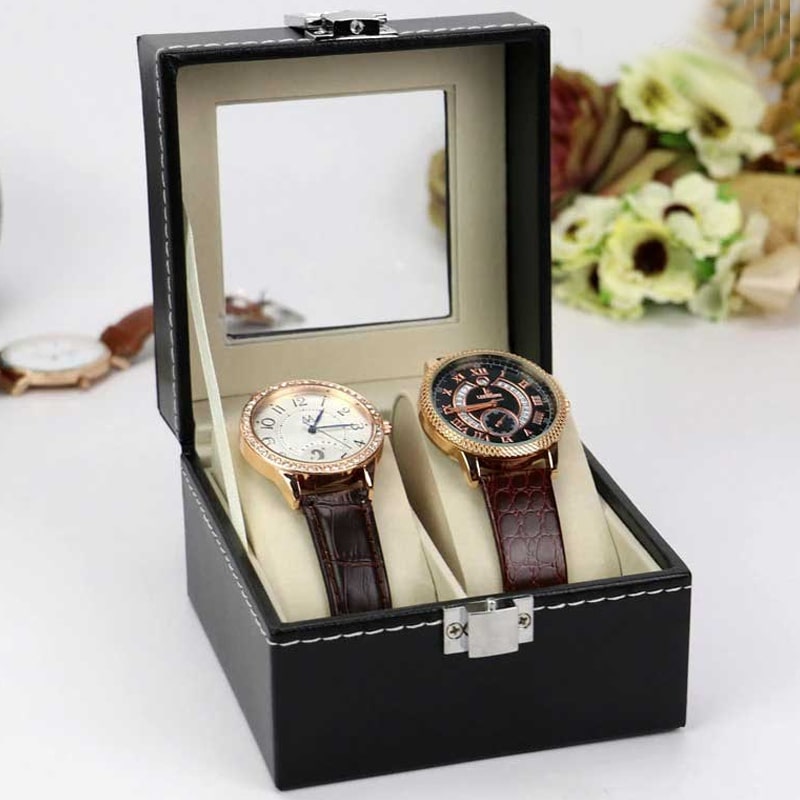 This watch box for 2 watches is perfect for daily use and for travel. The velvet cushions prevent the watches from slipping or getting scratched. The clear glass gives the box an elegant look, allowing you to display and quickly choose the watch that matches your outfit.
