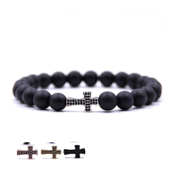 Bracelet with elastic (fits perfectly on all wrists). A subtly painted Christian cross delicately decorated with numerous discreet and elegant rhinestones. A modern and elegant bracelet with an unmistakable style. Wear on your wrist all the love and protection of Christ at an affordable price.