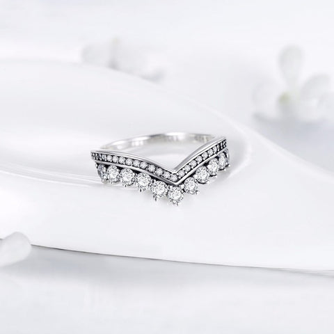 Dazzling Crown Ring with Rhinestone Accents and V-Shaped Design
