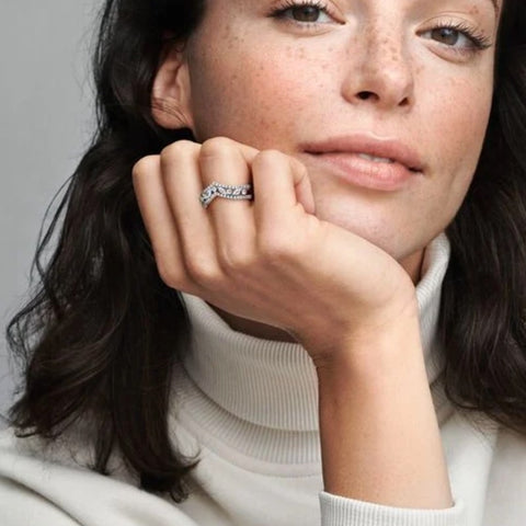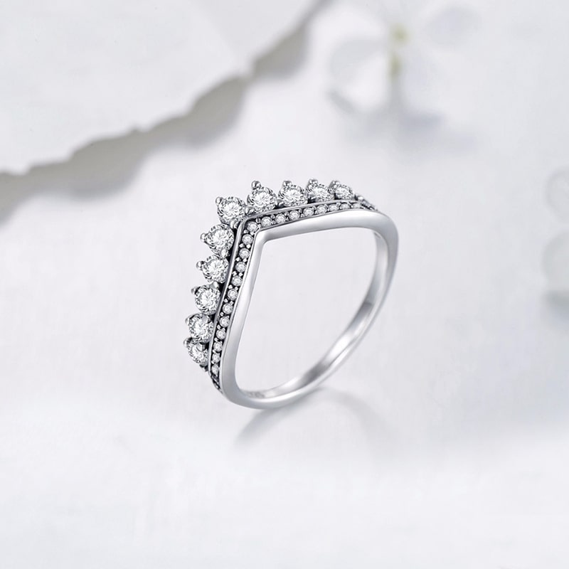 This crown ring with rhinestones boasts a V-shaped design that sits beautifully on the finger. It's a luxurious looking ring that is sure to please a sophisticated woman.