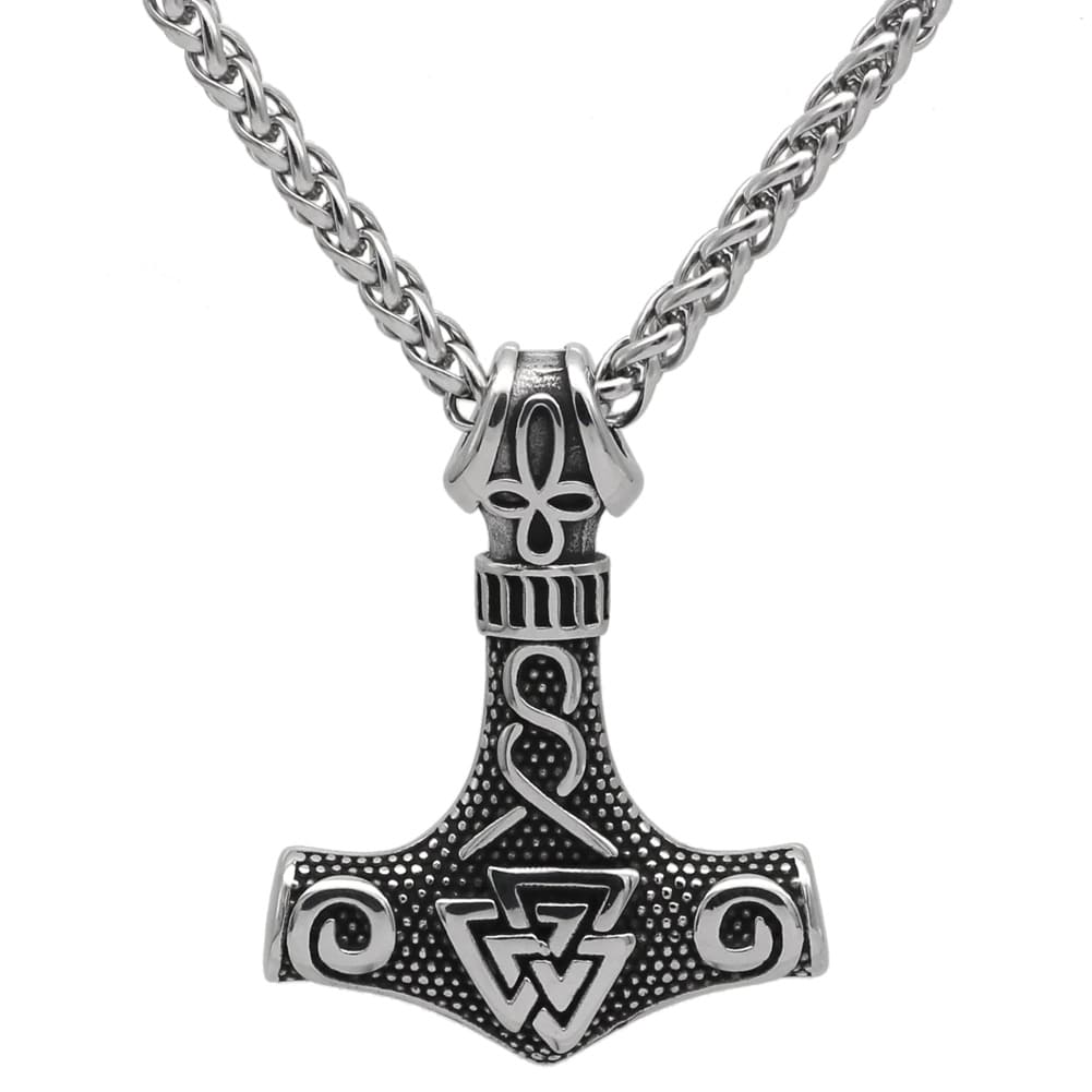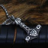 Adorn your neck with this Scandinavian hammer-shaped pendant, embellished with the Valknut symbol.