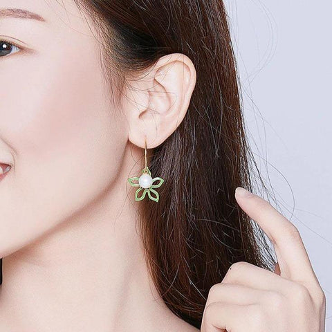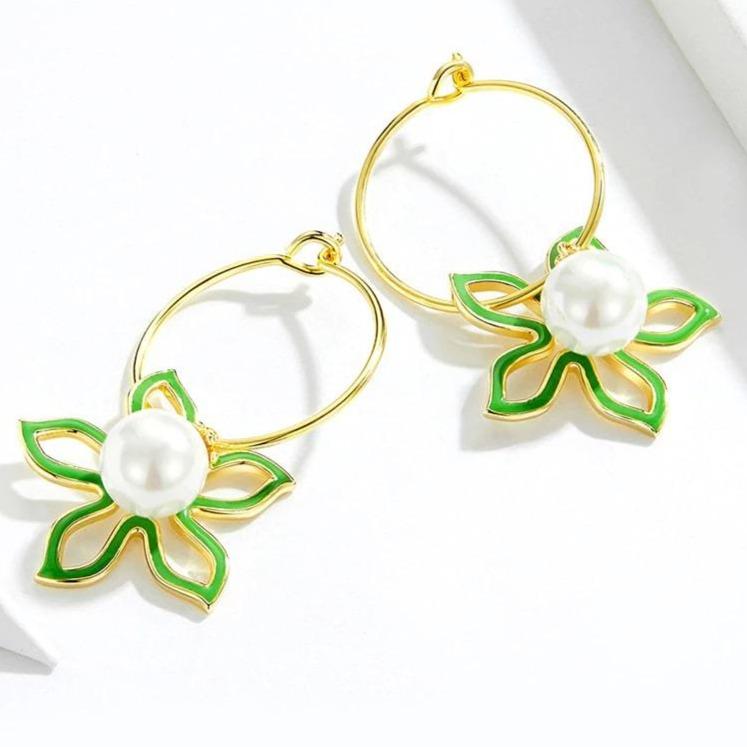 Original Vanilla Flower Earrings, colourful and adorned with beautiful white pearls — luxurious and high-quality jewellery.