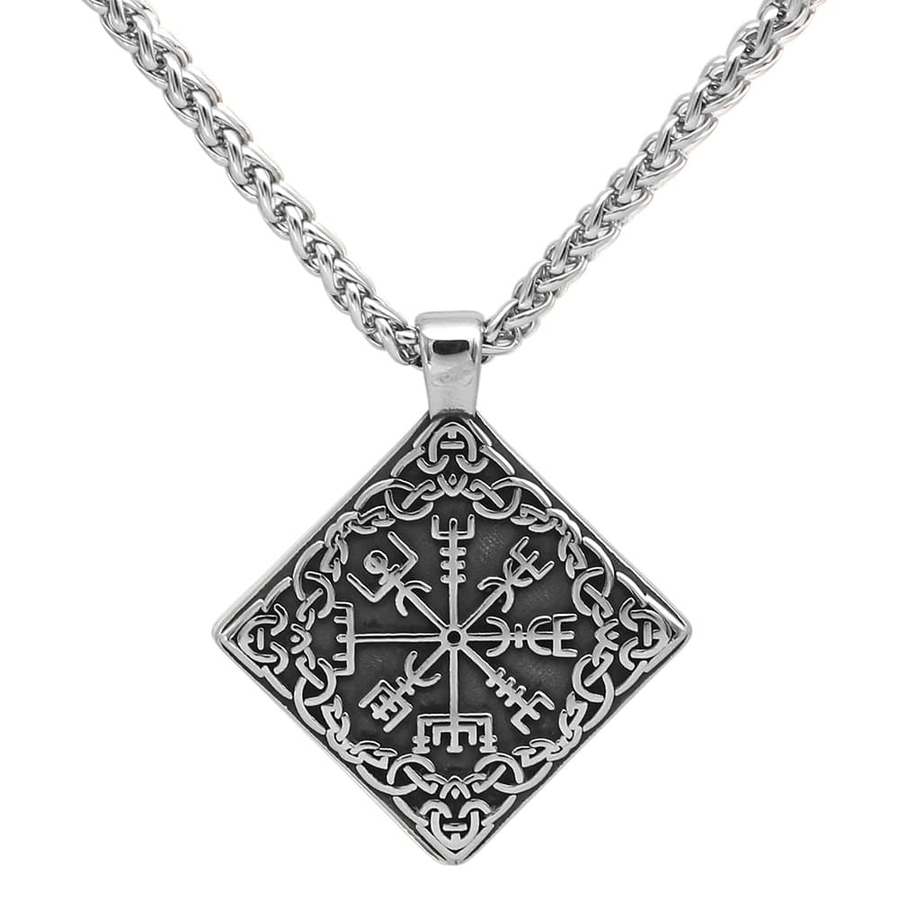 This necklace represents the Vegvisir compass. Its eight arms point in the directions of the compass cardinal points. This ancient Norse symbol is said to have helped Viking navigators find their way. Viking sailors painted this ancestral symbol on their longships and shields, and Norse conquerors firmly believed in the power of the Vegvisir compass.