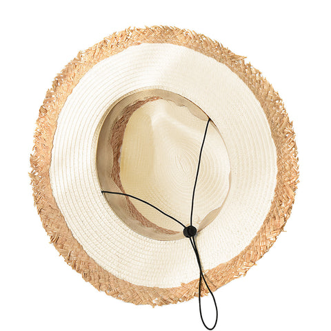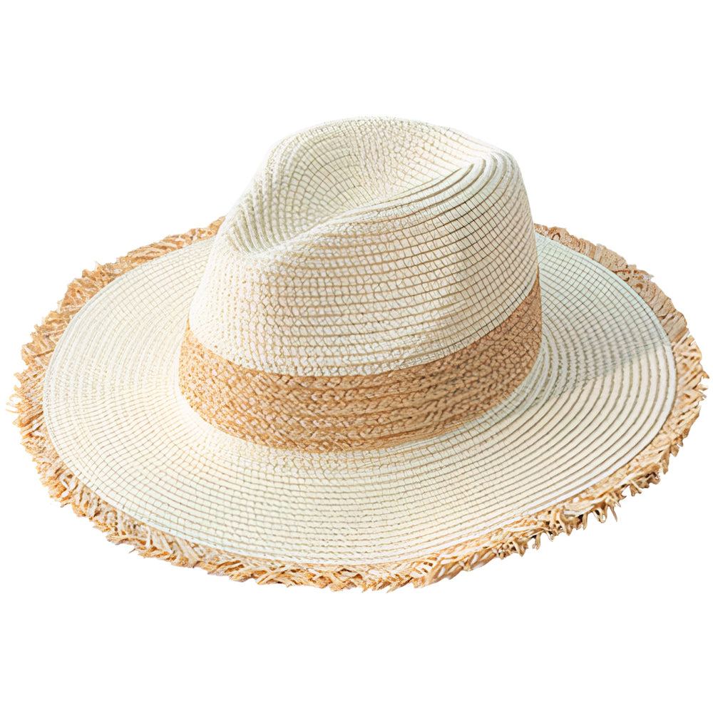 This versatile panama-style straw hat subtly blends shades of beige and natural straw, complementing any outfit with light, soft colours. The unstructured brim of the hat lends a lot of character to this indispensable fashion accessory. Whether on a summer outing or a stylish evening out, this hat is the ideal companion you can always rely on.