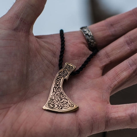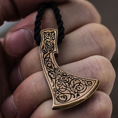 Bronze axe pendant. The pendant is decorated with magnificent intertwined Scandinavian motifs.