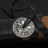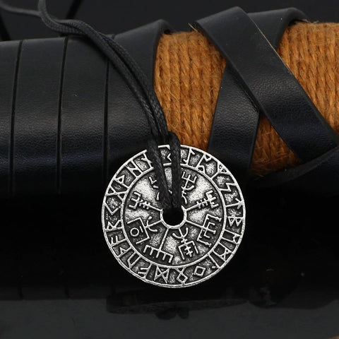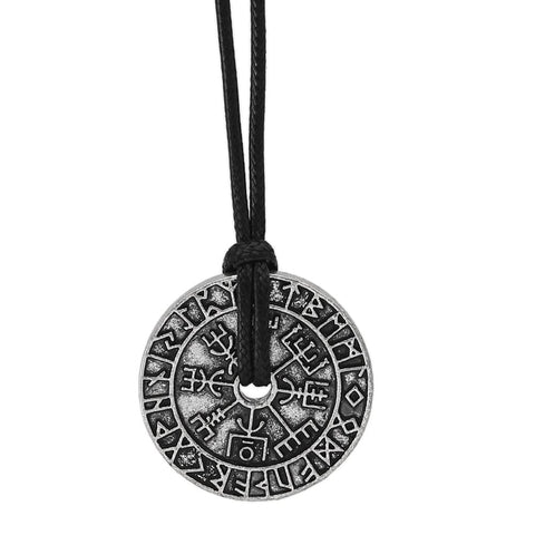 This medallion is decorated with the most powerful Viking symbols. On the main side are the runic alphabets, also known as Futhark. The Vegvisir symbol at the centre gives the medallion a unique design. On the back of the necklace are four legendary symbols: