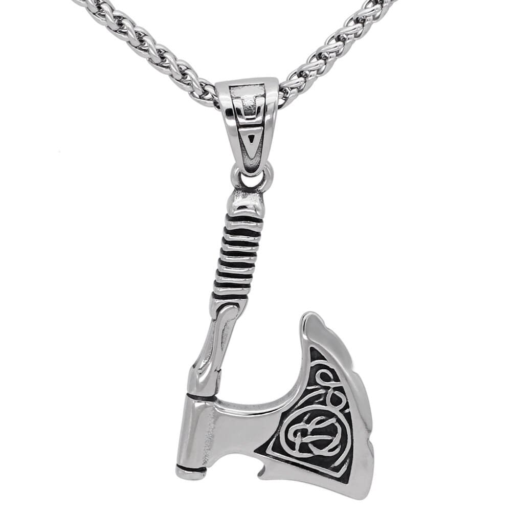 Grasp your Viking weapon with this steel axe-shaped pendant and set out to conquer the world.