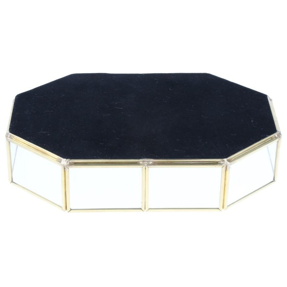 Admire this Antique Glass Jewellery Box, a product that combines elegance with premium quality. Its glass design, enhanced by a high-quality copper frame, adds a touch of sophistication to your space. Inspired by Nordic retro style, its unique geometric shape captures the essence of a bygone era. Fitted with a delicate chain to hold the lid in place, this jewellery box is both functional and visually appealing. Treat yourself to a timeless piece that showcases your precious accessories with charm and grace.