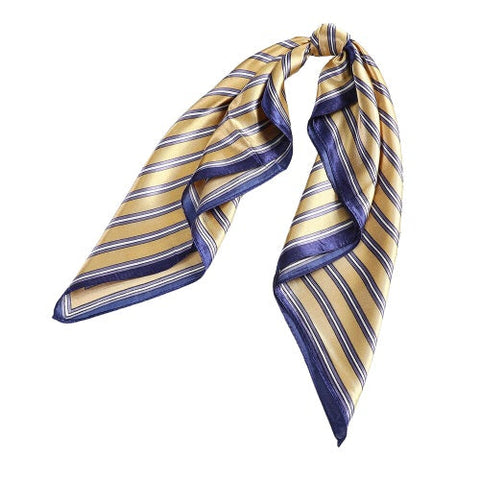 A vintage-style hair scarf featuring dark blue stripes and gold fabric. The style is vintage due to the pattern and elegant thanks to the fabric. Small details make all the difference to your hairstyle.