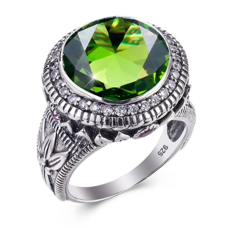 A unique vintage-style ring that is sure to please thanks to its stunning gemstone. The ring features a magnificent peridot stone, said to represent strength and courage. The perfect accessory for the stylish man looking to make a statement.