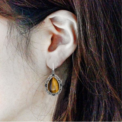 These water drop-shaped earrings combine the timeless charm of a classic piece of jewellery with the protective properties of tiger's eye. Forget your worries and find yourself.