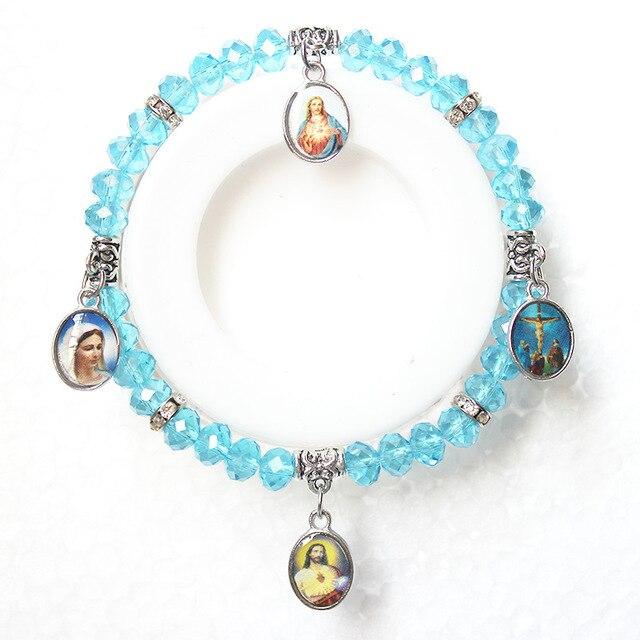 This Virgin Mary bracelet is made up of crystal beads that give the piece a charming play of reflections and transparency. The special feature of this Virgin Mary bracelet are the medallions that adorn it, representing Christ and his mother, Mary. Mary, also known as Saint Mary or the Virgin Mary, is the mother of Jesus and has been venerated by the Christian Church since the apostolic era. She is known for her loving, gentle, and benevolent character, being a symbol of love and kindness in Christianity. This magnificent Virgin Mary bracelet is a wonderful way to honour her and to keep this symbol of love and eternal dedication to Jesus Christ close to your wrist.