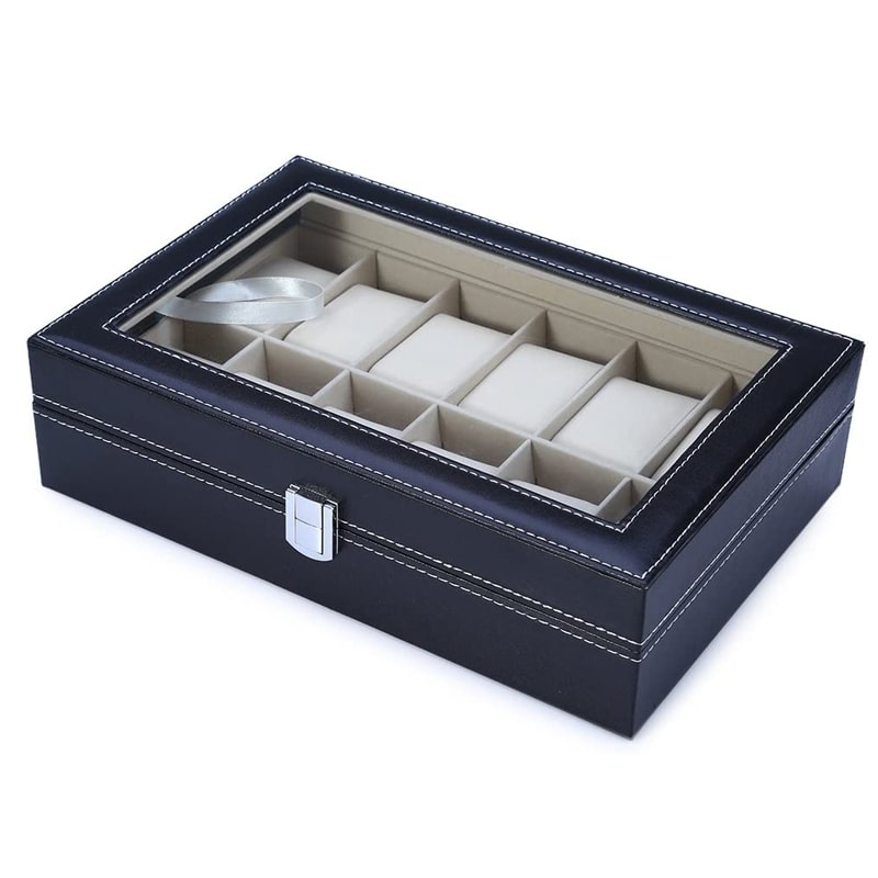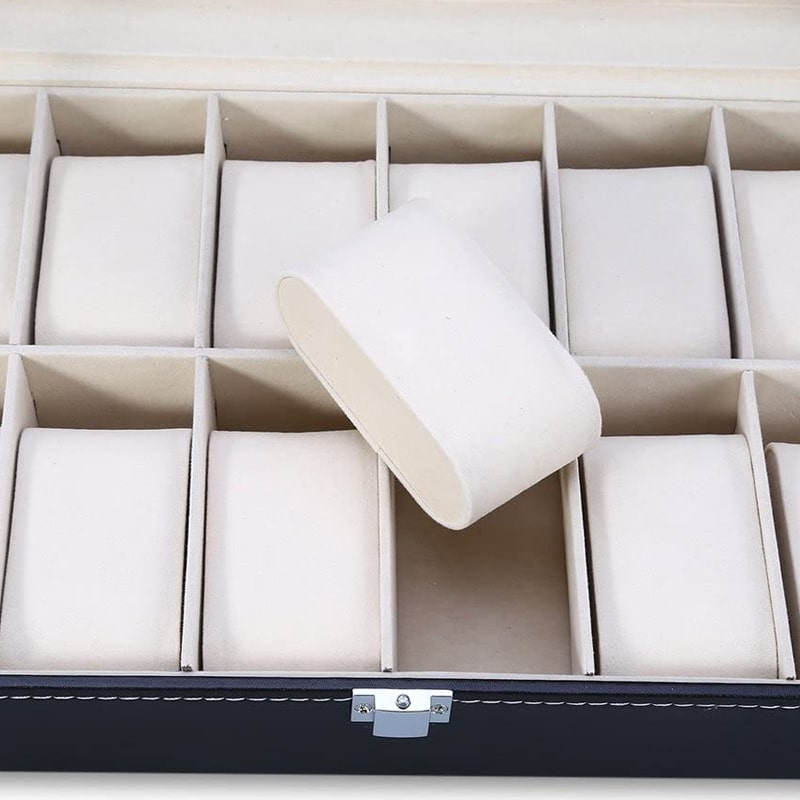 This box for 12 watches keeps your entire watch collection safe. Perfect product for men or women who own a large number of watches.