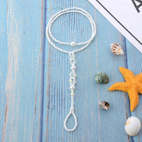 This white ankle bracelet is a delicate piece that can be worn with any type of clothing. It pairs perfectly with evening dresses and formal attire, but it's also ideal for the beach and relaxation moments. Made of beads, this accessory is stylish and shiny. It's the perfect complement to necklaces or bracelets!