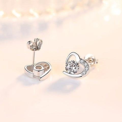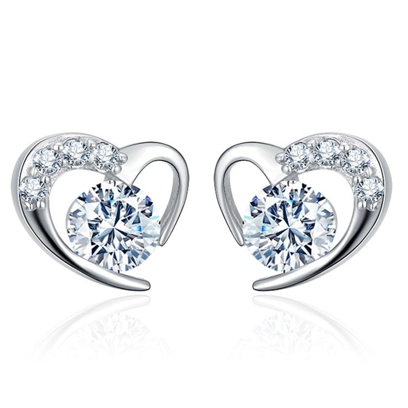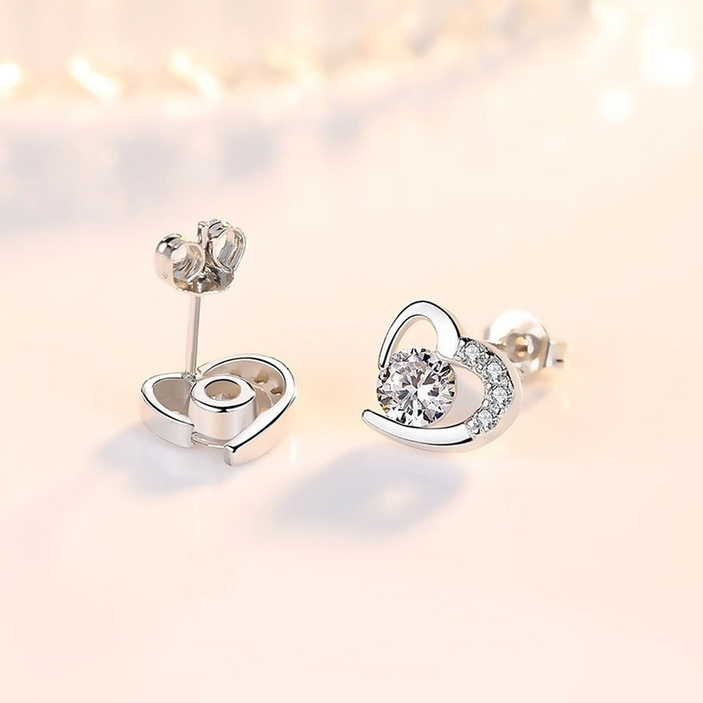 These heart-shaped white gold earrings are modern and elegant jewellery that add a charming touch to a woman's look. The earrings are made of silver plated with white gold, and the heart shape will make your significant other's heart beat faster.