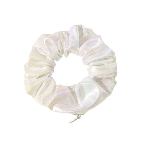 Classic white hair elastic. An accessory that hides a small zippered pocket.