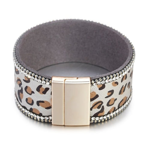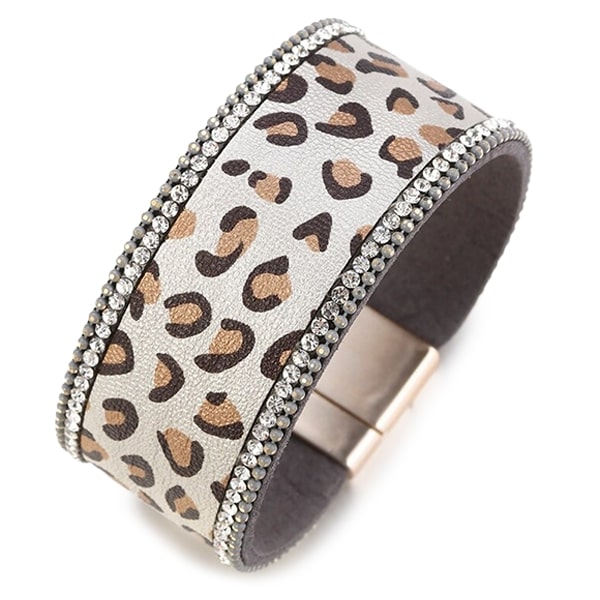 Elegant Leather Bracelet for Women with White Leopard Pattern