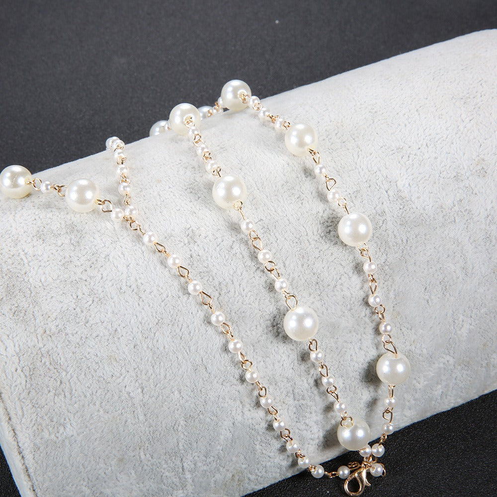 Beautiful ankle bracelet with white pearls.
