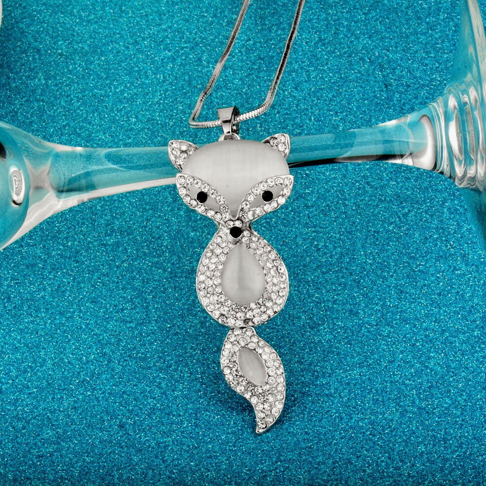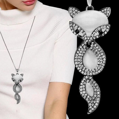 White Gold Plated Fox Necklace - Simply Stunning! Perfect for the elegant woman who loves foxes!