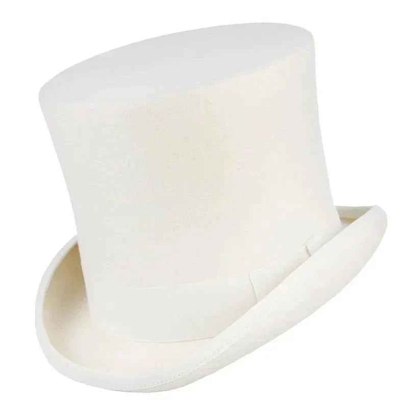 This white top hat is the perfect accessory for those wishing to add a touch of sophistication and elegance to their look. Whether for a wedding, a formal evening, or a themed event, this hat stands out for its timeless style and ability to adapt to any occasion. Its impeccable white colour gives it an air of purity and distinction, making it an essential choice for special occasions.