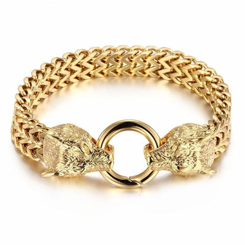 This wolf chain bracelet offers animal protection inspired by the Norse mythology of the Vikings. These wolves of the powerful war god Odin are symbols of strength and greed.