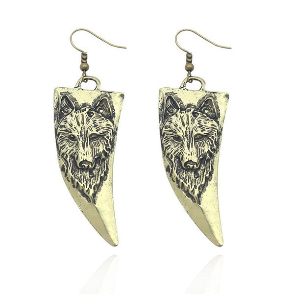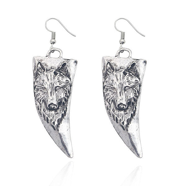 Dangling earrings are the perfect jewels to express your femininity and adorn your look with exquisite elegance. This unique model features a wolf's head on a rhinoceros-shaped earring. They are perfect for adding a touch of fantasy and modernity to your style.