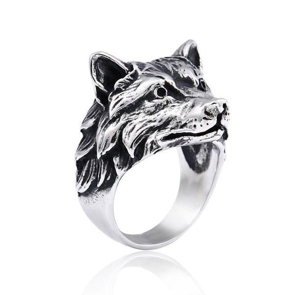 The Wolf Ring shown in this image is part of a large jewellery collection, but it has several unique features.