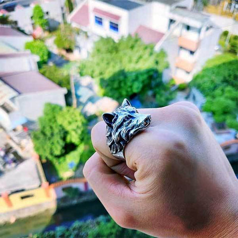 Wolf rings often evoke a sense of superiority. In this ring, however, we see a wolf ready to react at the slightest sign of danger. This is a very well-executed representation. The ring's look perfectly matches the masculine style.