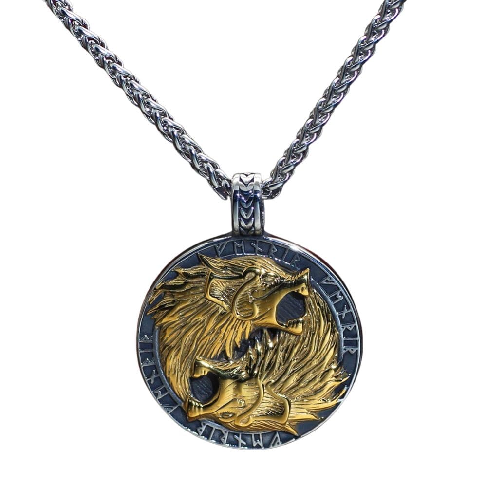 This necklace adorned with the two mythical wolves is a unique accessory for daily wear. The runic inscriptions around the medallion give the piece an authentic Viking Era appearance.