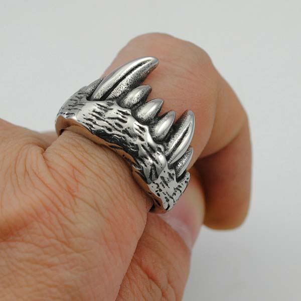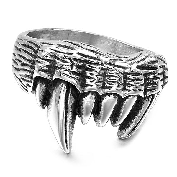 The canine wolf ring is an authentic design piece that represents the ferocity and strength of the wolf. This piece of jewellery has been carefully designed to highlight the sharp fangs of this totem animal, a symbol of power and masculinity. It also represents protection against negative energies.