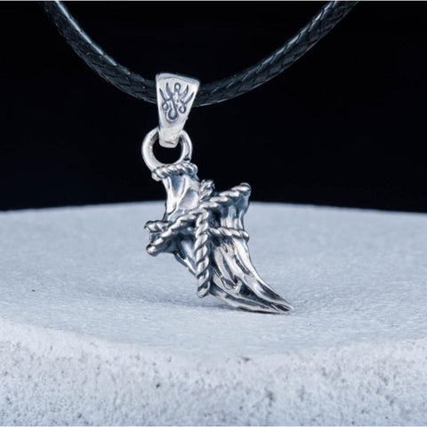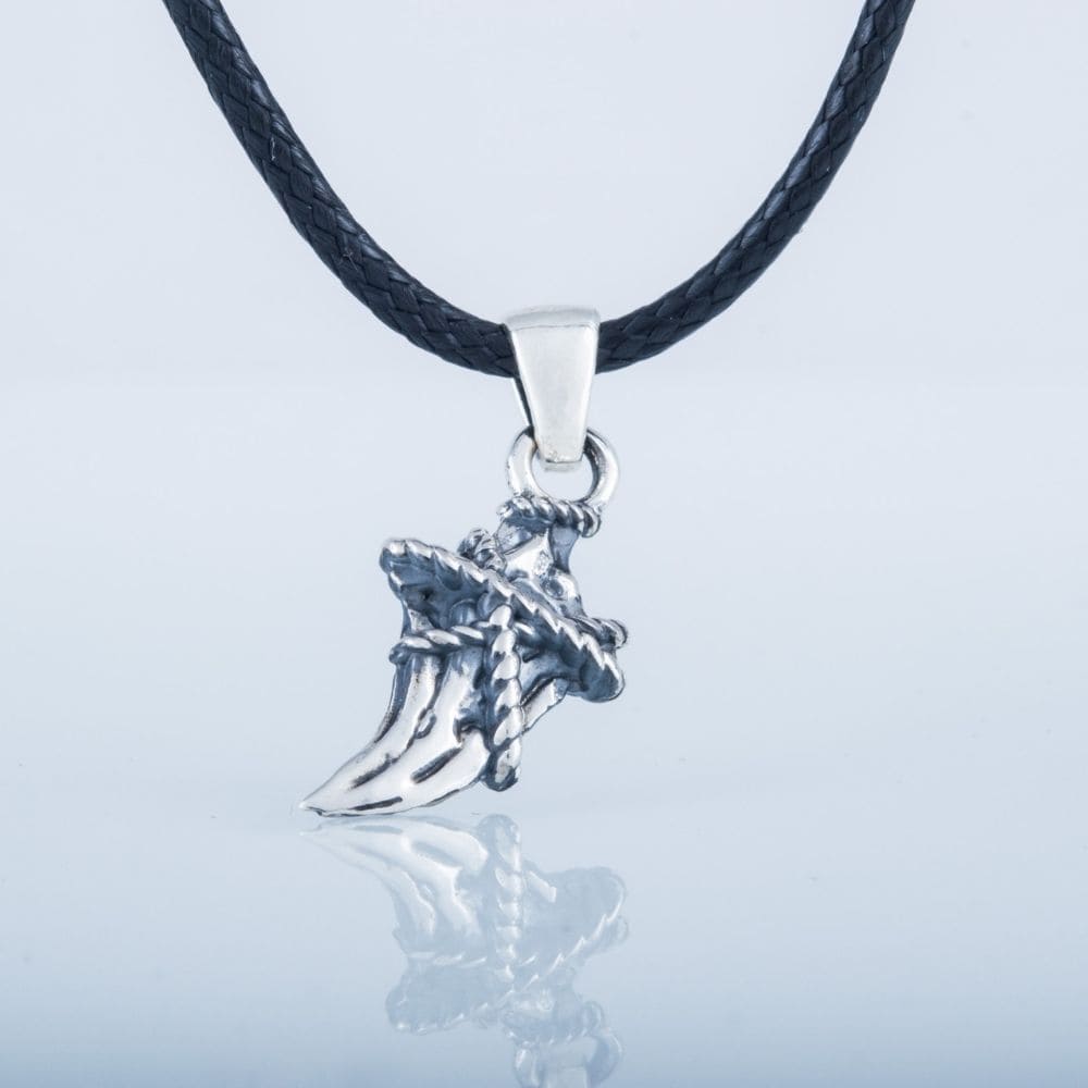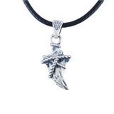 Understand the spirit of the wolf with this silver wolf tooth necklace, hanging on a genuine leather cord. The design of this pendant gives it a unique look.