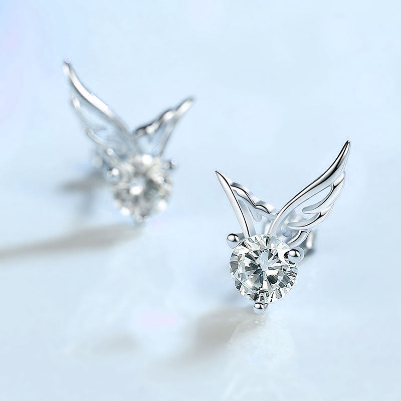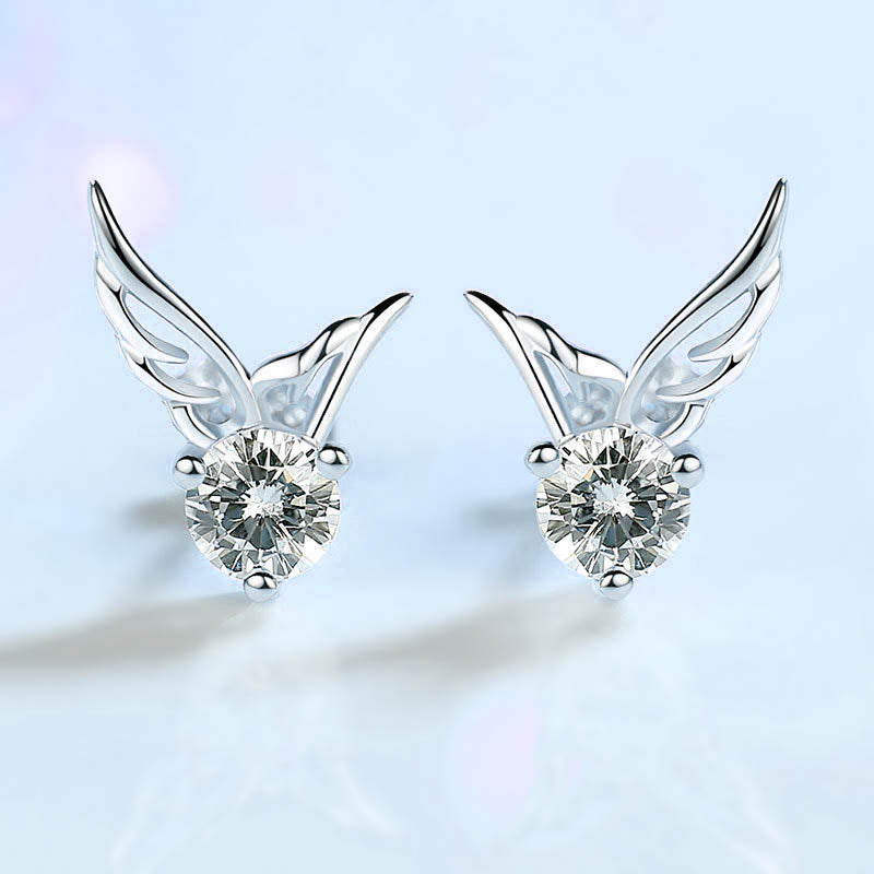 These women's angel wing earrings are a captivating piece of jewellery where the elegance of silver meets the sparkle of cubic zirconia. Just like a typically feminine piece of jewellery, these earrings blossom around a perfectly cut crystal that's similar to a diamond, whose shimmering reflections further enhance the glow of the silver wings.