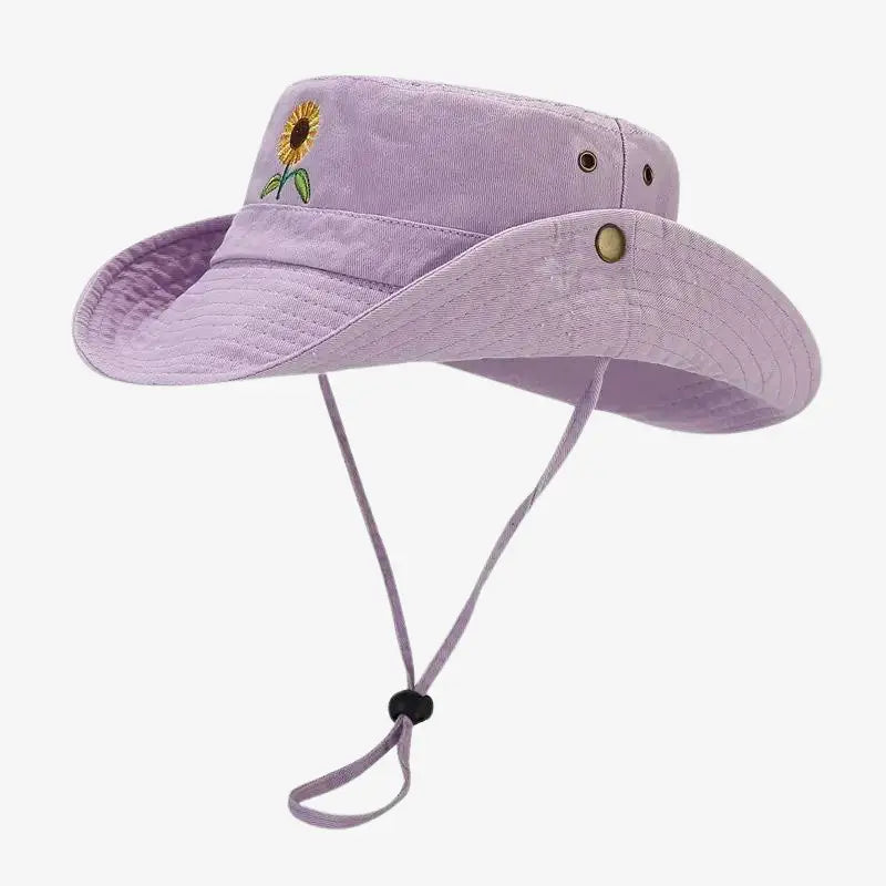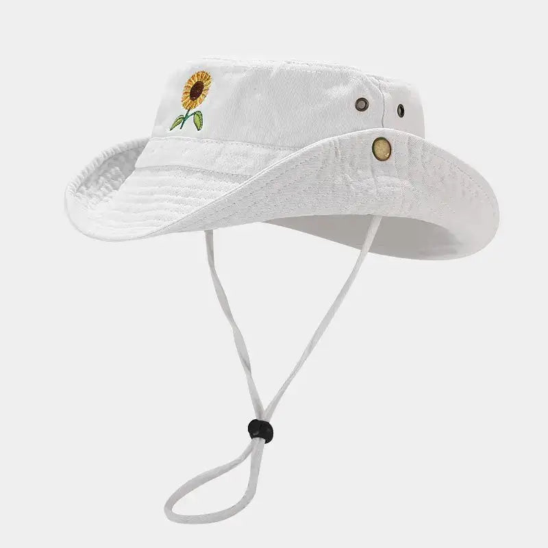 This women's bucket hat is the latest trend of the year, blending the free spirit of cowboys with feminine softness. Made from soft cotton, it ensures exceptional comfort and offers effective sun protection. The adjustable size of 56 to 60 cm fits different head shapes, making it perfect for any sun-soaked adventure.