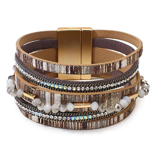 Modern leather bracelets for women are ideal for keeping up with the latest trends, bringing a touch of elegance to your wrist and completing any look. This women's fashion accessory is perfect for all occasions, matching both formal and casual outfits, enhancing your style and expressing a refined sense of women's fashion. Fashionable leather bracelets for women, with a practical stainless steel clasp, easily slip onto your wrist.