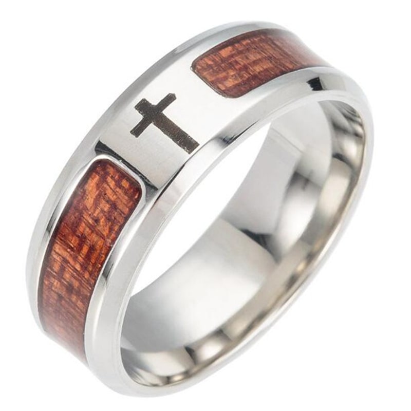 If you're a person of faith, this wooden ring with a cross can support your spirituality. This piece of jewellery is a combination of wood and stainless steel.
