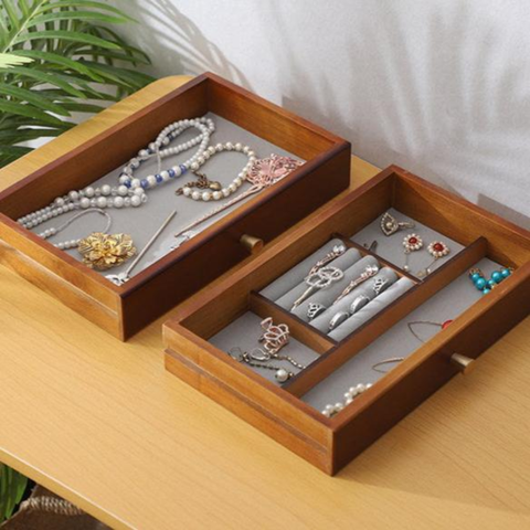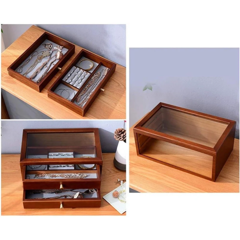 Wooden Jewellery Box Design: Premium wood finish, drawers with gold-plated tiers, clear lid. Elegance and organisation for your jewellery.
