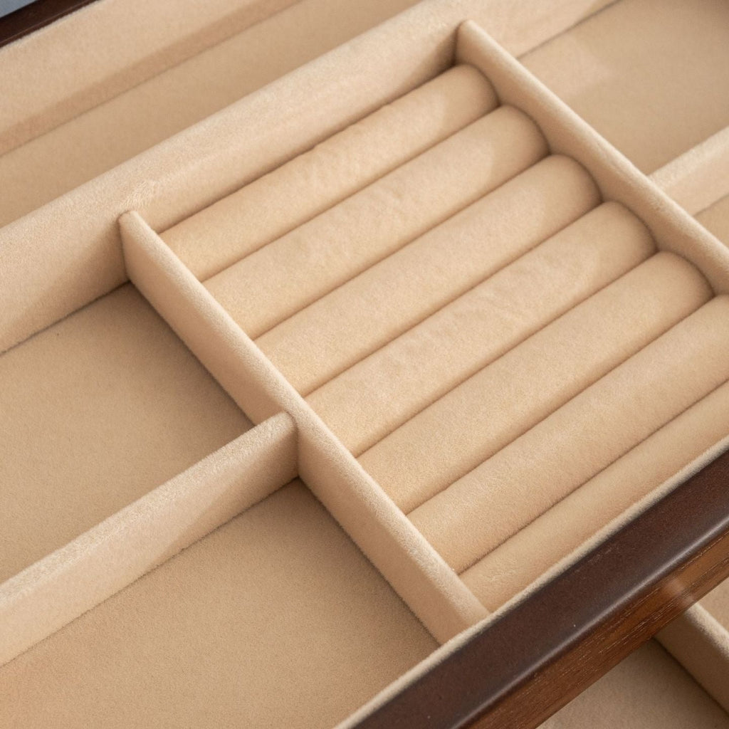 Wooden Jewellery Box with Glass Lid is perfect for viewing your jewellery from the outside, securely stored and stylishly designed with premium craftsmanship.