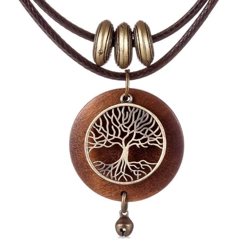 This wooden necklace with a life tree symbolizes strength and stability. Wood is one of the five Chinese elements, promoting harmony and creativity, making it an ideal material to represent the tree of life.