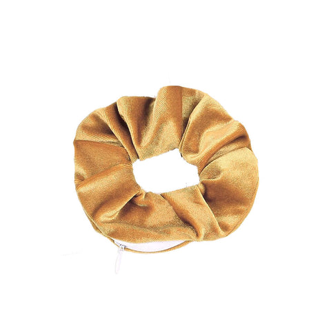 Soft yellow hair elastic with a small storage pocket. Modern mustard colour in a velvet fabric. The style is simply elegant.