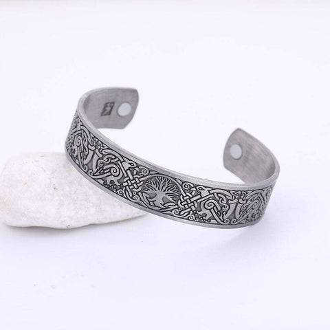 The Vikings were skilled and ruthless warriors, and these fearsome people drew their strength from the Yggdrasil tree. This tree of life and wisdom is represented in this Yggdrasil Tree of Life bracelet, which grants strength, intelligence and reason to all who wear it. This tree of life bracelet in Viking style has been carefully crafted to meet even the highest standards. The material of this tree of life bracelet is a zinc alloy, an element that poses no risk of allergy and is highly resistant to wear.