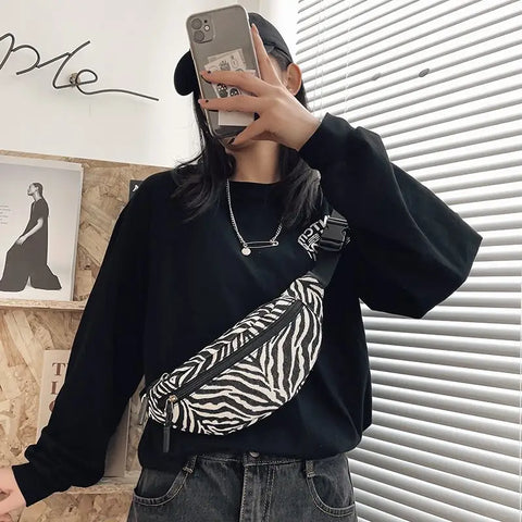 This zebra print waist bag gives you a unique style.